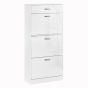 Shoe Cabinet with 4 Drawers Storage High Gloss Cupboard with Flip Doors Pull Down Furniture Unit with Adjustable Shelves for 18 Pairs White