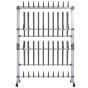This trendy mobile shoe rack can hold a large number of shoes, making it ideal for the whole family. Sturdy frame: The aluminium frame ensures sturdiness and stability.Easy to move: Thanks to four free-rolling wheels, the shoe organiser is easy to move.Practical design: The shoe storage can hold up to 40 pairs of shoes and 10 pairs of boots while saving huge amounts of space with its unique design.