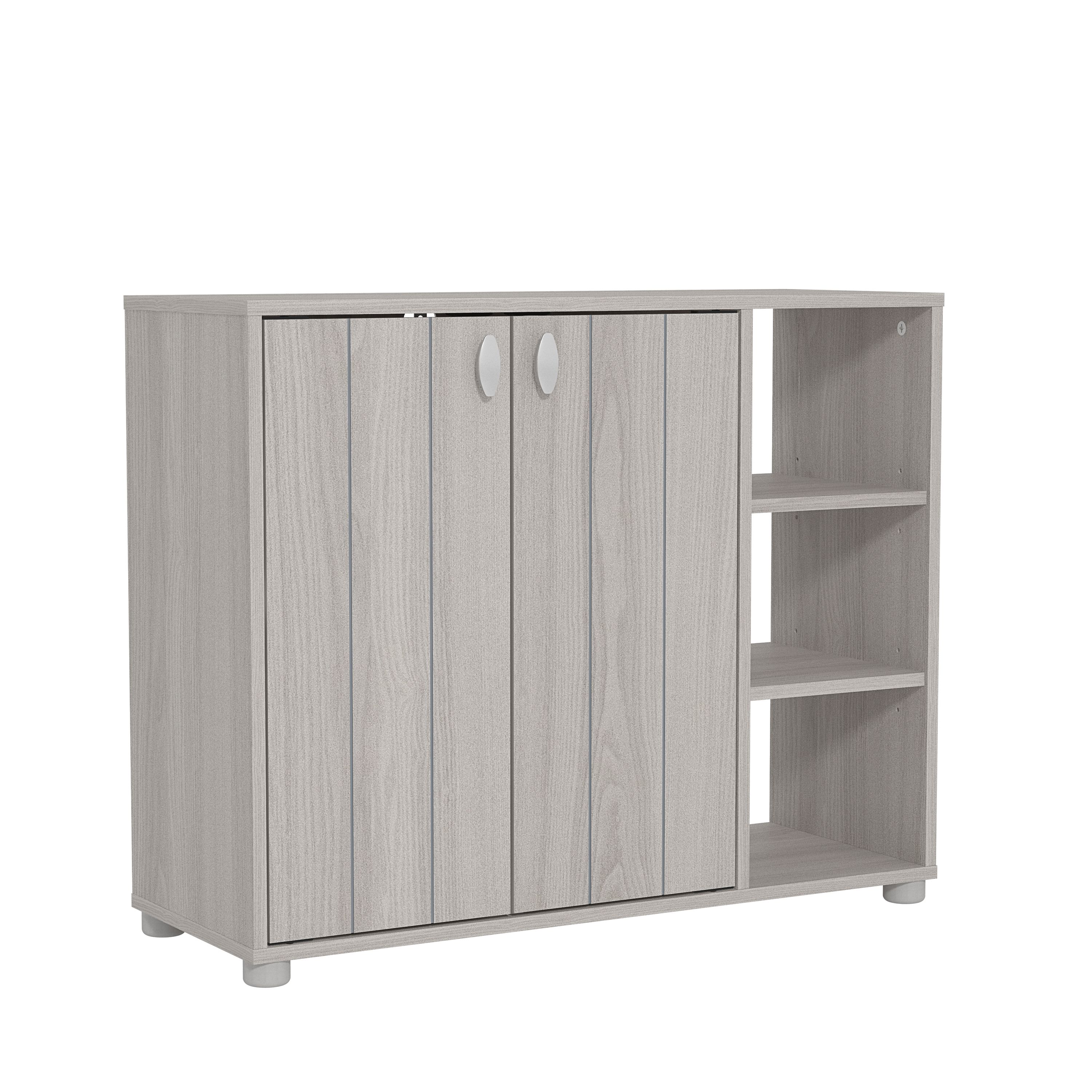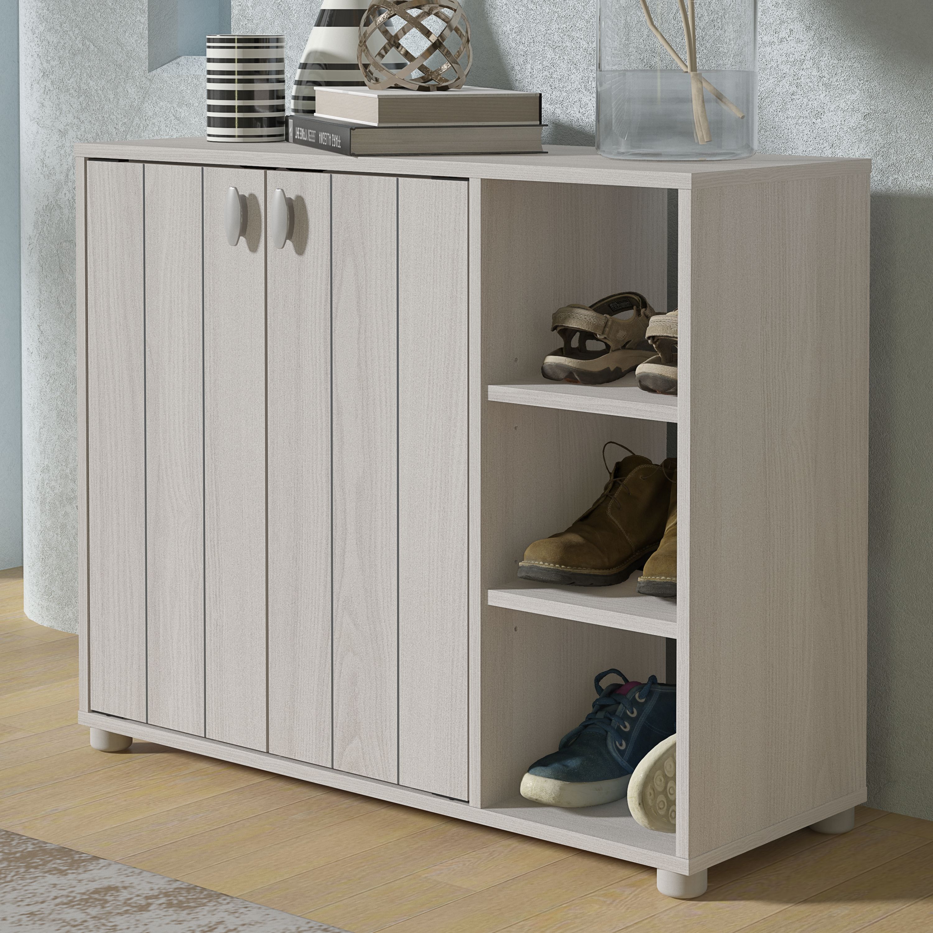 Shoes Cabinet - Siddley Shoe Cabinet with Two Doors and Open Shelves Warm Grey and Oak
