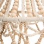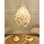 This handcrafted chandelier combines natural rubberwood beads with delicate fabric lace in a macrame inspired design. Its soft curves and warm tones create a cosy, bohemian atmosphere in any room. Ideal above a dining table or in a relaxing living space, it blends rustic charm with artistic detail. The intricate, handmade finish makes each piece truly unique.