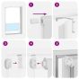 Elevate your bathroom's style and functionality with this shower roller blind, offering privacy, tidiness, and elegance. Water-resistant and durable material: The shower roller blind is made of PEVA, making it water-resistant and easy to clean with a damp cloth or simply flush, ensuring long-term use.Enhanced privacy: The shower roller blind provides complete privacy while showering and maintains a clean environment in your bathroom.Versatile installation options: The shower roller blind can be mounted to the ceiling or wall using screws, or attached directly to the window with clamping brackets, allowing you to choose the method that best suits your needs.Space-saving design: The roll-up mechanism neatly stores the blind when not in use, maximising valuable bathroom space.Child safety and adjustability: The roller blind includes a chain connector that makes it easy to adjust the height according to your needs, and it also has a cord clip to add child safety. Warning:Keep cords out of the reach of young children. Cords may become wrapped around a child's neck. Good to know:Before buying blinds, start by measuring your window glass. Just a friendly tip: the fabric is a bit narrower than the total width, including the brackets.To make sure your new blinds provide complete coverage, just add 4 cm to the width of the window glass when calculating what to order.