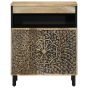 This side cabinet, featuring a timeless look, is meant to be an excellent addition to your home. Solid mango wood: Solid mango wood is a strong, tropical hardwood that makes sturdy furniture. Its beautiful wood grains make every piece of furniture slightly different from the next. Made of solid mango wood, the cabinet is durable and stable.Ample storage space: The cupboard offers ample storage space for keeping your various daily essentials well-organised and within easy reach.Displaying function: The top of the storage cabinet is great for displaying your decorative items, photo albums or small plants.Sturdy legs: The iron legs add the side board's sturdiness and stability.Retro style: This home organiser with hand-carved floral patterns brings the luxury of retro style to your interior, being the focal point of your room. Good to know:Each item is unique with variations in colours and grains. The delivery is random, ensuring the exclusivity and individuality of your product. Warning:To prevent it from tipping over, this product must be used with the provided wall attachment device.