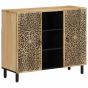 This side cabinet, featuring a timeless look, is meant to be an excellent addition to your home. Solid mango wood: Solid mango wood is a strong, tropical hardwood that makes sturdy furniture. Its beautiful wood grains make every piece of furniture slightly different from the next. Made of solid mango wood, the cabinet is durable and stable.Ample storage space: The cupboard offers ample storage space for keeping your various daily essentials well-organised and within easy reach.Displaying function: The top of the storage cabinet is great for displaying your decorative items, photo albums or small plants.Sturdy legs: The iron legs add the side board's sturdiness and stability.Retro style: This home organiser with hand-carved floral patterns brings the luxury of retro style to your interior, being the focal point of your room. Good to know:Each item is unique with variations in colours and grains. The delivery is random, ensuring the exclusivity and individuality of your product. Warning:To prevent it from tipping over, this product must be used with the provided wall attachment device.