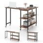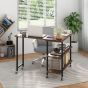 Side Table - 360deg Rotating Sofa Side Table Mobile End Table with 2-Tier Storage Shelves-Rustic Brown