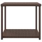 Are you looking for a table to keep your essentials? This 2-layer side table is a perfect choice, both practical and beautiful! Durable material: PE rattan, also known as poly rattan, is weather resistant and easy to clean. It remains beautiful on the outside for a long period of time. It's more economical than other materials, while offering great quality, convenience and an aesthetic look.Powder-coated steel frame: The powder-coated steel frame of the coffee table ensures sturdiness and stability.Additional storage: Use the empty space below to store anything from extra plates and cups to some artistic decorations.Wide applicability: Not only can you combine this single table with your garden furniture in various arrangements, but you can also use it indoors. Good to know:To make assembly as easy as possible, each product is delivered with a manual. Note:To make sure your outdoor furniture stays beautiful, we recommend protecting it with a waterproof cover.