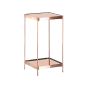 Give your living area a touch of stylish glam with this understated, glossy side table. With a mirrored top, crafted from durable tempered glass, and sturdy metal legs, it features an additional shelf providing extra storage space for books, magazines and more. Perfect to set next to the sofa, chaise longue or armchair, this side table is an ideal accent piece for any modern interior. Details: Color: Copper. Main material: Metal. Additional material: Metal, Tempered Glass. Weight: 6 Assembly: Full Assembly Required Weight Capacity: 20 Legs Height: 57