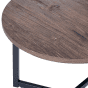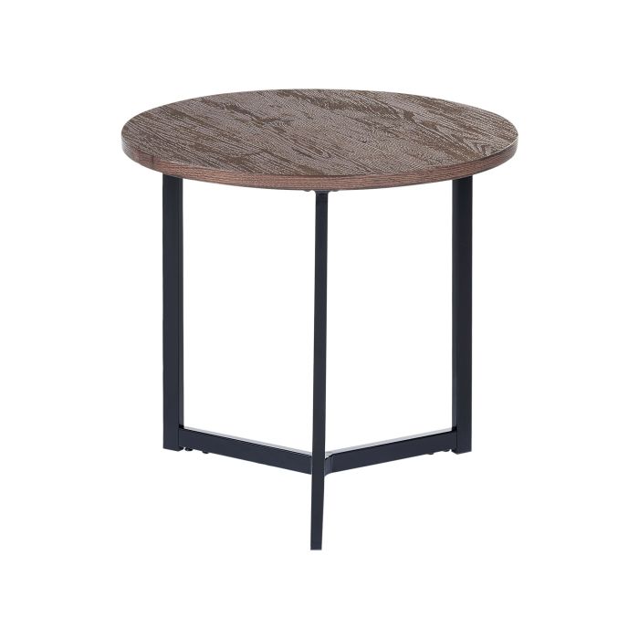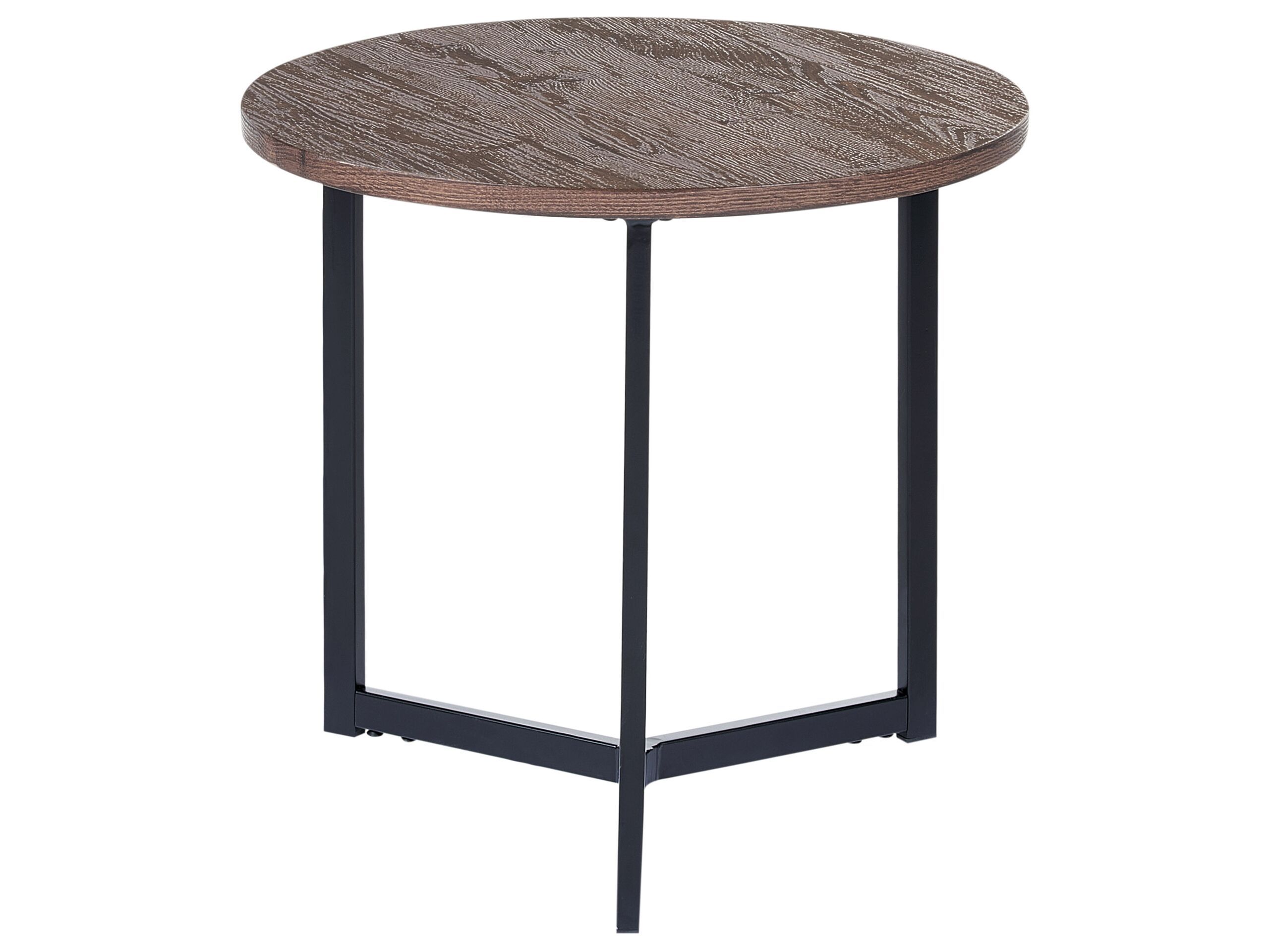 This small side table in industrial style will bring a modern accent to your room. It features a tabletop in dark wood colour and a wide, metal base in black. Thanks to its compact size, the side table will fit every space. Place it next to your sofa or armchair to have your cup of coffee or accessories close to you. Details: Color: Dark Wood, Black. Main material: MDF. Additional material: Iron, MDF. Weight: 4 Assembly: Full Assembly Required Weight Capacity: 80 Legs Height: 43