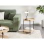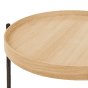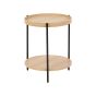 This round side table combines natural charm with modern design. The top features a tray-like shape, with both the top and lower shelf showcasing a natural-looking wood-knot effect for added warmth and texture. Its sturdy black metal frame ensures stability and style, while plastic caps protect your floors from scratches. Perfect for storing essentials or displaying decorative items, this versatile table adds a touch of nature-inspired elegance to any living space.