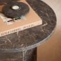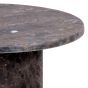 Geometric side table with clean lines and unique stone variations. Round tabletop and hexagonal pillar base add drama and sophistication to any interior.