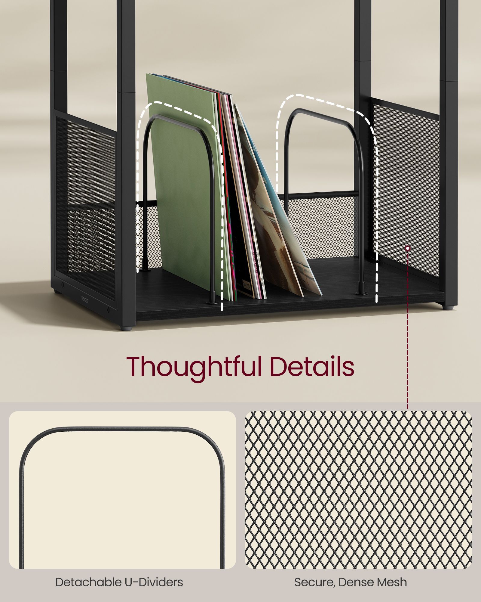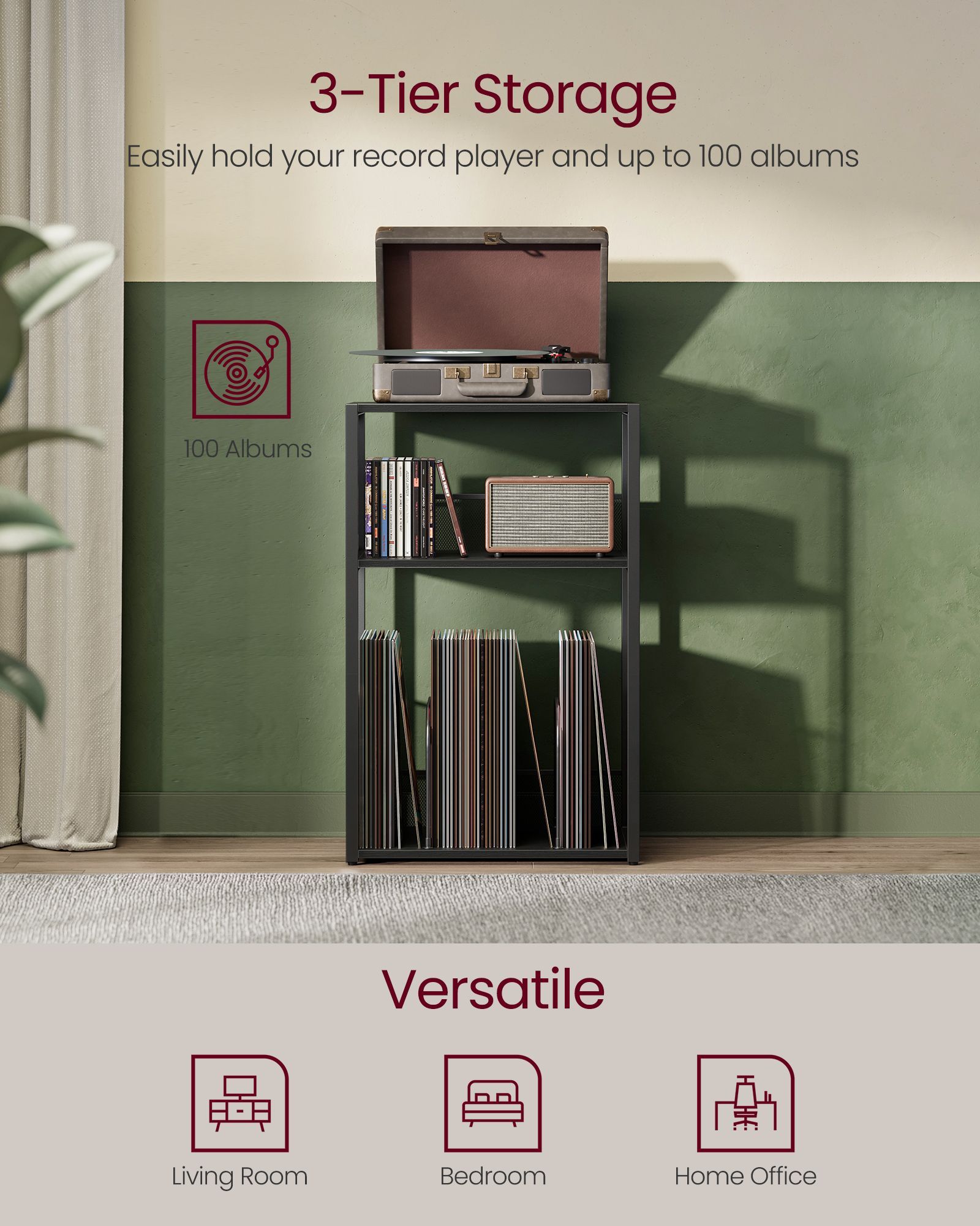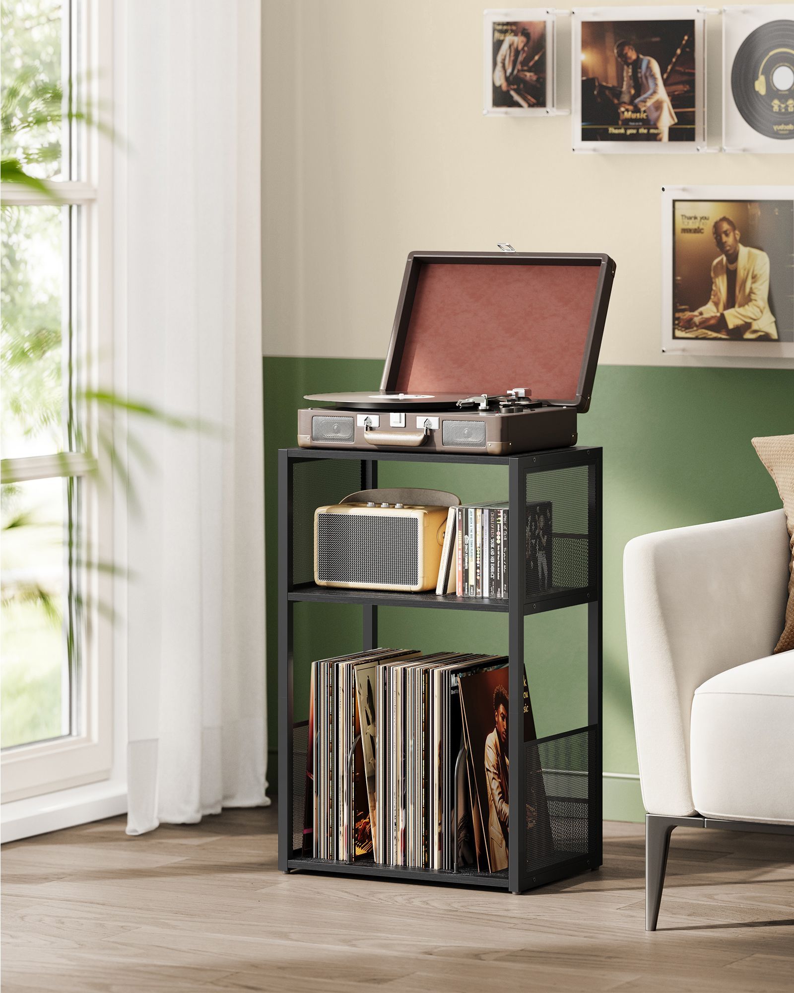 Side Table - SERDA Record Player Stand 3 Tier Ebony Black - Black