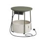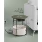 This stylish VASAGLE round side table, in a chic forest green and cream white finish, is the perfect blend of form and function. Its main use is to provide a convenient surface for your living room or bedroom. Key features include an integrated charging station with power outlets and USB ports, a handy fabric basket for storage, and a modern design that complements any decor.