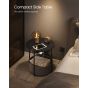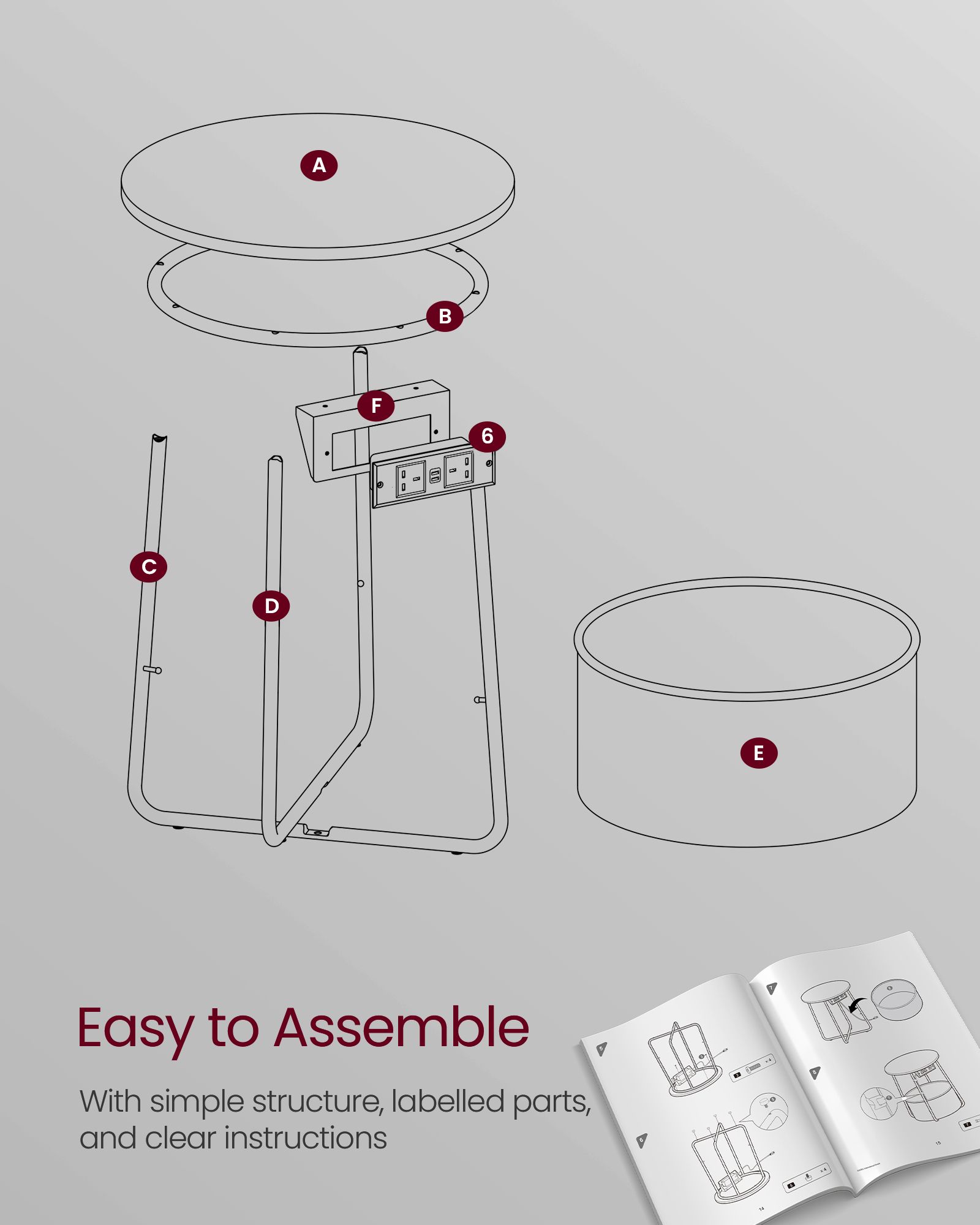 This stylish VASAGLE round side table, in elegant Ebony Black and Slate Grey, is the perfect blend of form and function. Keep your devices powered up with its integrated charging station featuring power outlets and USB ports. A convenient fabric basket offers extra storage, making it ideal for your living room, bedroom, or bedside.