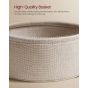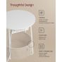 This VASAGLE side table is a stylish and functional addition to your living room or bedroom. Featuring a modern matte white and camel brown design, it boasts a built-in charging station with power outlets and USB ports to keep your devices powered up. The convenient fabric basket offers extra storage for essentials, making it the perfect bedside or end table.