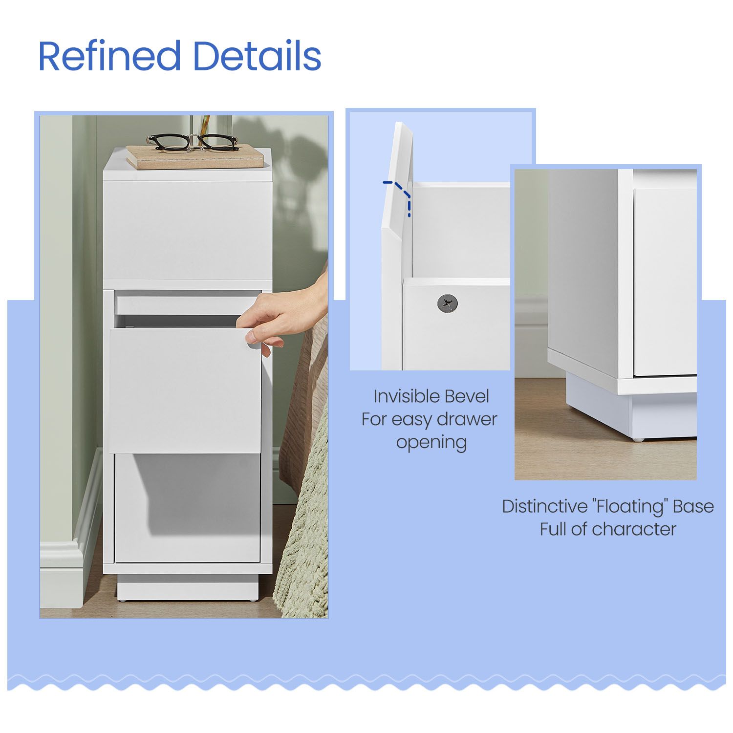 Side Table - VERRA Narrow Slim End Table with 2 Drawers and 1 Open Compartment - White