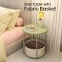 Side Table - VERRA Round End Table with Fabric Basket - Cream
