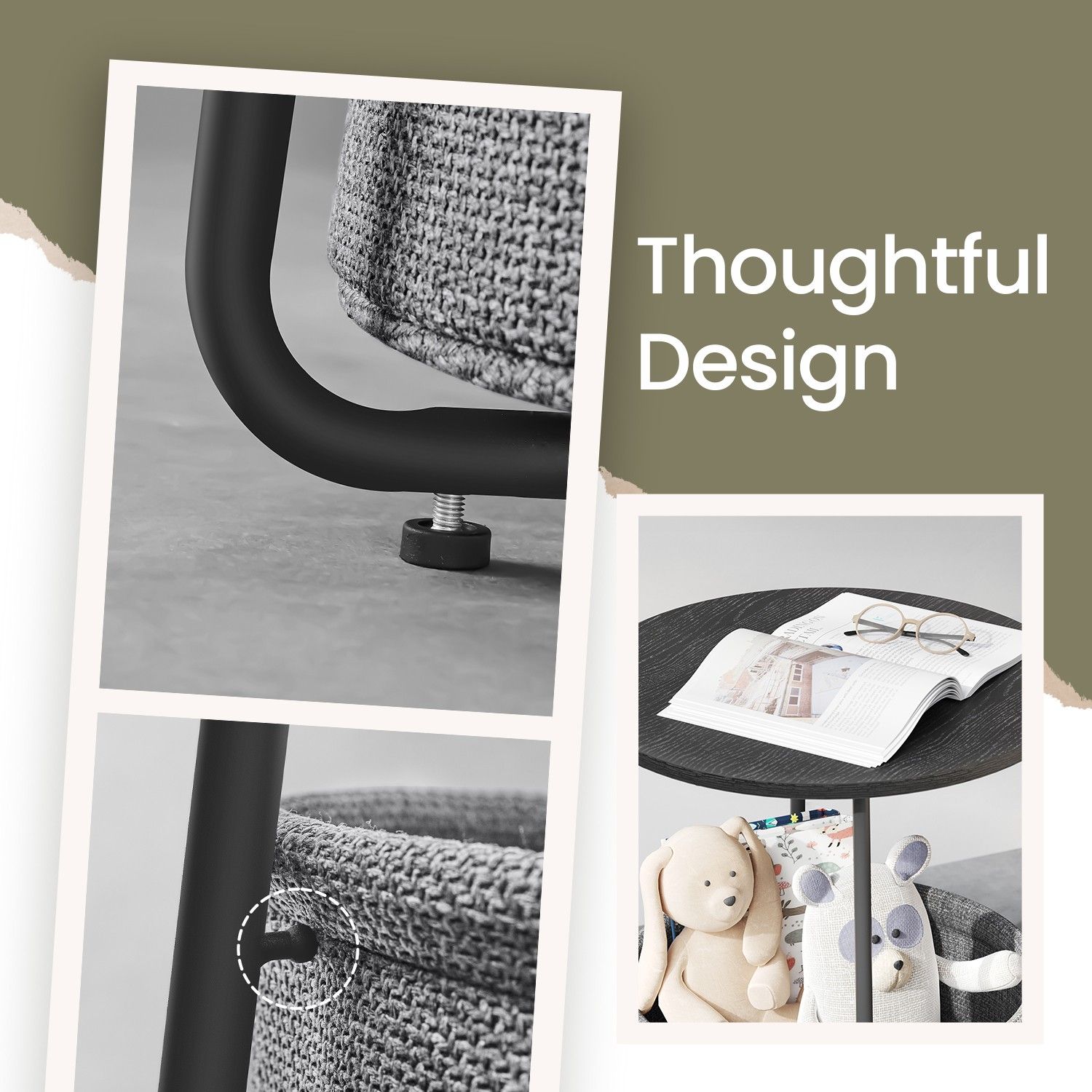 Side Table - VERRA Round End Table with Fabric Basket - Ebony Black