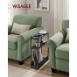 This VASAGLE 3-Tier Slim Side Table, in a stylish Ebony Black and Ink Black finish, is perfect for small spaces. Its narrow design fits easily beside beds or sofas, acting as a convenient bedside table or end table. Featuring a built-in charging station with 2 USB ports and 2 outlets, it keeps your devices powered up. The tiered shelves offer ample storage for books, decor, or essentials, with a handy magazine rack on the side.