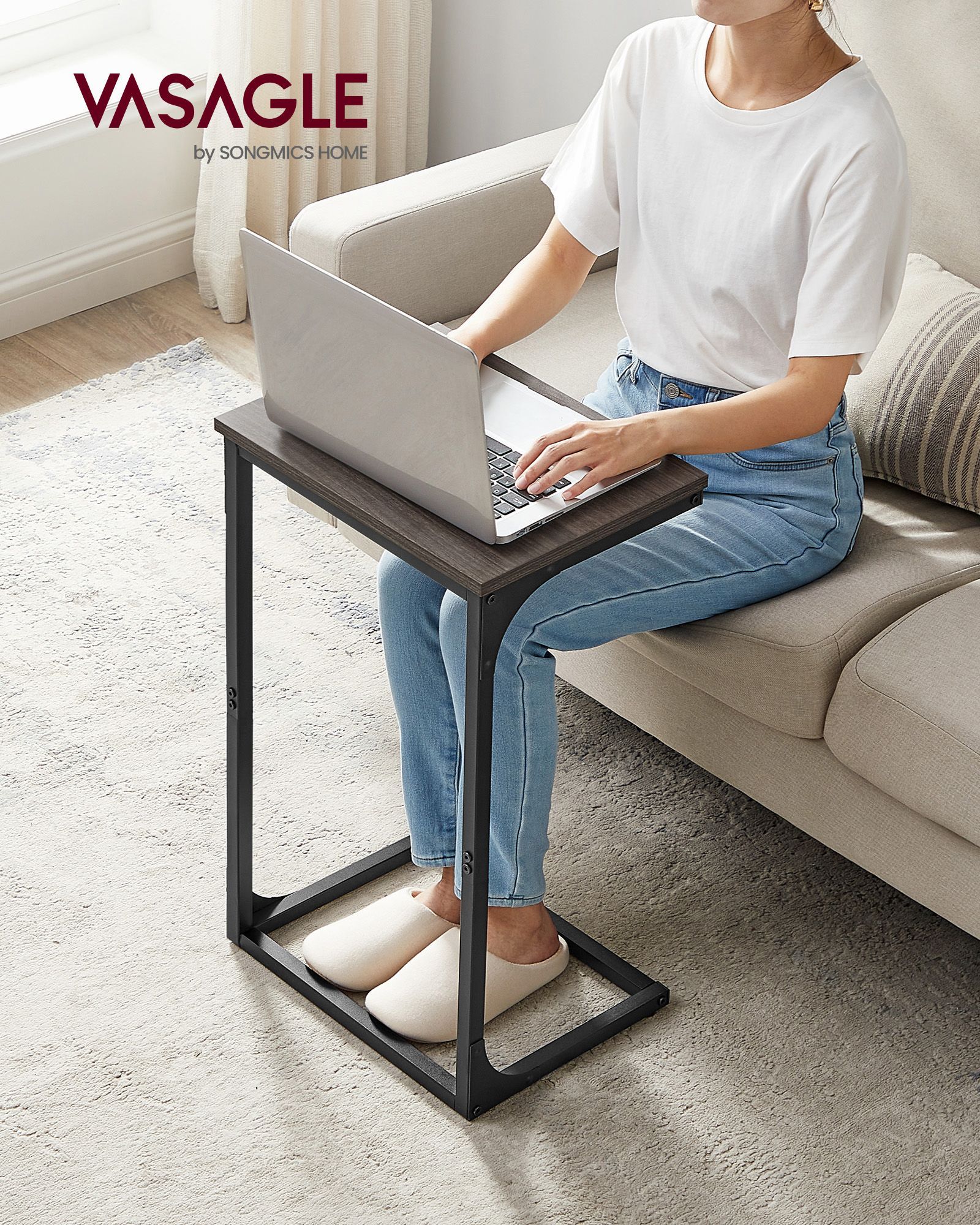 Elevate your living space with the VASAGLE C-Shaped Side Table. This versatile table, in a stylish Chestnut Brown and Ink Black finish, is perfect as a bedside or sofa companion. Its sturdy metal frame and industrial design offer both durability and aesthetic appeal, making it an ideal addition to your living room or bedroom.