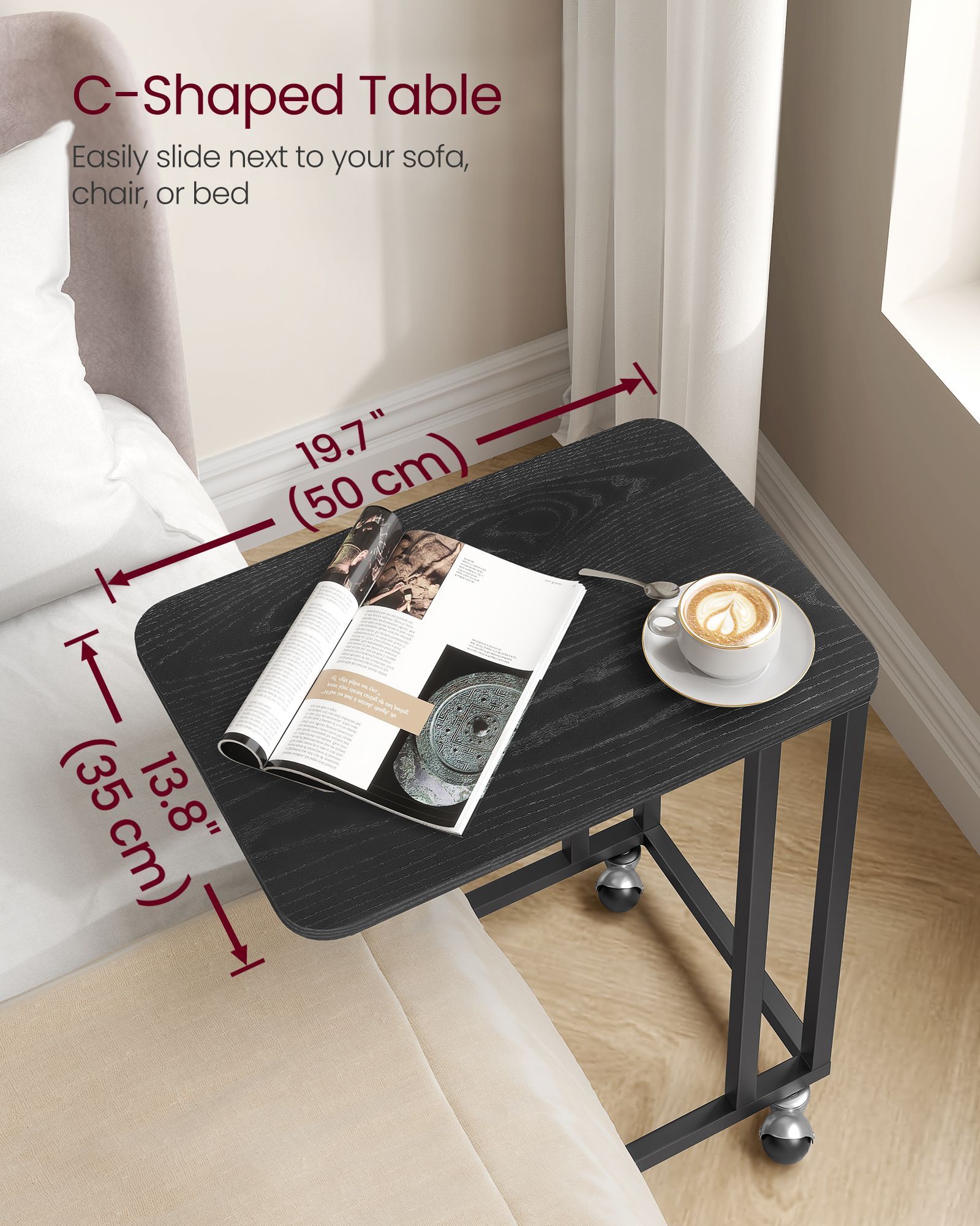 Introducing our Side Table with a durable steel frame and convenient castors for easy mobility. Crafted with quality materials, this table offers both style and functionality. The sleek steel frame provides stability and modern appeal, while the castors ensure effortless movement from room to room. Perfect for use as a bedside table or as an accent piece in any living space, adding versatility to your home decor.