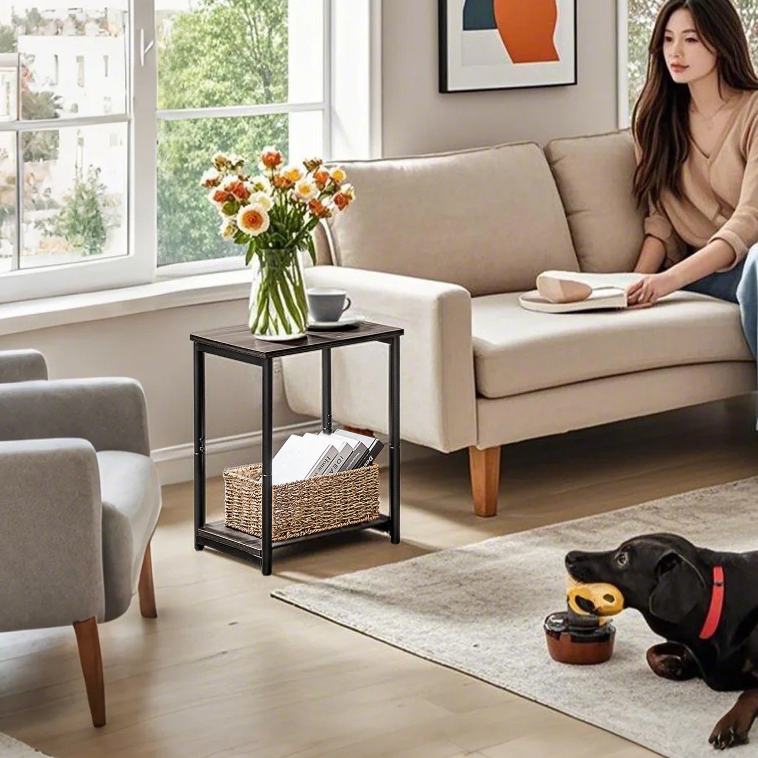Side Tables - VERRA Set of 2 Sofa Side Tables 2 Tier Bedside Table - Brown
