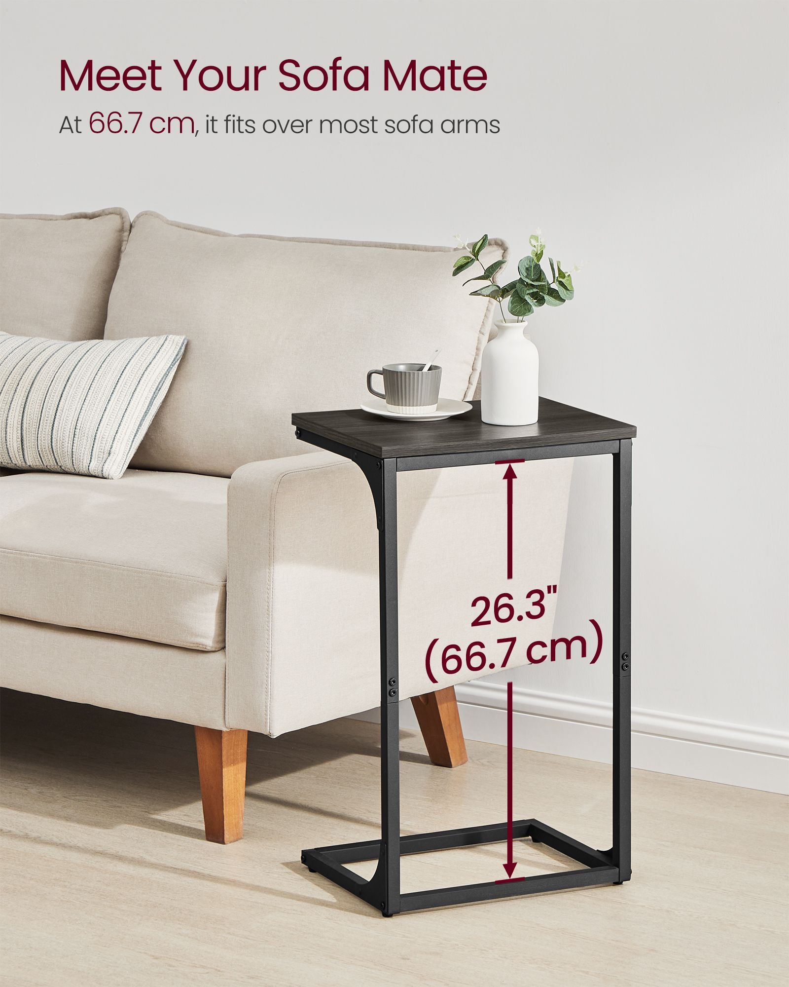 Side Tables - VIVNIA C-Shaped 66.7 cm High Oak and Metal - Grey