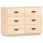 This wooden sideboard is meant to satisfy your various requirements and is an excellent addition to your room. Solid pine wood: Solid pine wood is a beautiful natural material. Pine wood has a straight grain, and the knots give the material its signature, rustic look.Stable frame: The wooden frame ensures sturdiness and stability.Ample storage space: The sideboard cabinet has 6 drawers, providing enough space for you to keep things organised and within easy reach.Sturdy top: The top of this cupboard is perfect for displaying your decorative items, picture frames and potted plants. Warning:In order to prevent overturning, this product must be used with the wall attachment device provided. Note:Each product comes with an assembly manual in the box for easy assembly.