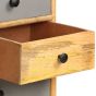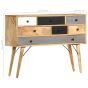 This wooden sideboard oozes a timeless charm that will make a truly eye-catching addition to your home decor. This vintage cabinet is made of solid mango wood, a hardwood with dense grains. Rough mango wood not only has the strength to bear the weight, but also stands the wear and tear of time. As a consequence, this side table is exceedingly stable, durable and attention-grabbing. The exquisite craftsmanship and elegant wood grains make every piece of furniture distinctive and slightly different from the next. Additionally, this solid wood cabinet features 7 drawers, providing commodious storage space for your magazines, books, as well as various other items. Important note: The colours and wood grain may vary from piece to piece, making each hall table unique. The delivery is random, ensuring the exclusivity and individuality of your product.