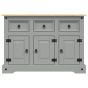 This practical wooden sideboard is designed to meet your storage needs and is an ideal complement to your living room. Solid pine wood: Solid pine wood is a beautiful natural material. Pine wood has a straight grain, and the knots give the material its signature, rustic look.Ample storage space: The storage cabinet with drawers provides ample space to keep your items dust free and well organised.Practical doors: Keep your space clutter-free by hiding small essentials behind the doors of the sideboard cabinet.Sturdy top: The sturdy top of the buffet is ideal for placing fruit baskets, photo frames, potted plants, and other decorative items. Warning:To prevent it being overturned, this product must be used with the provided wall attachment device.