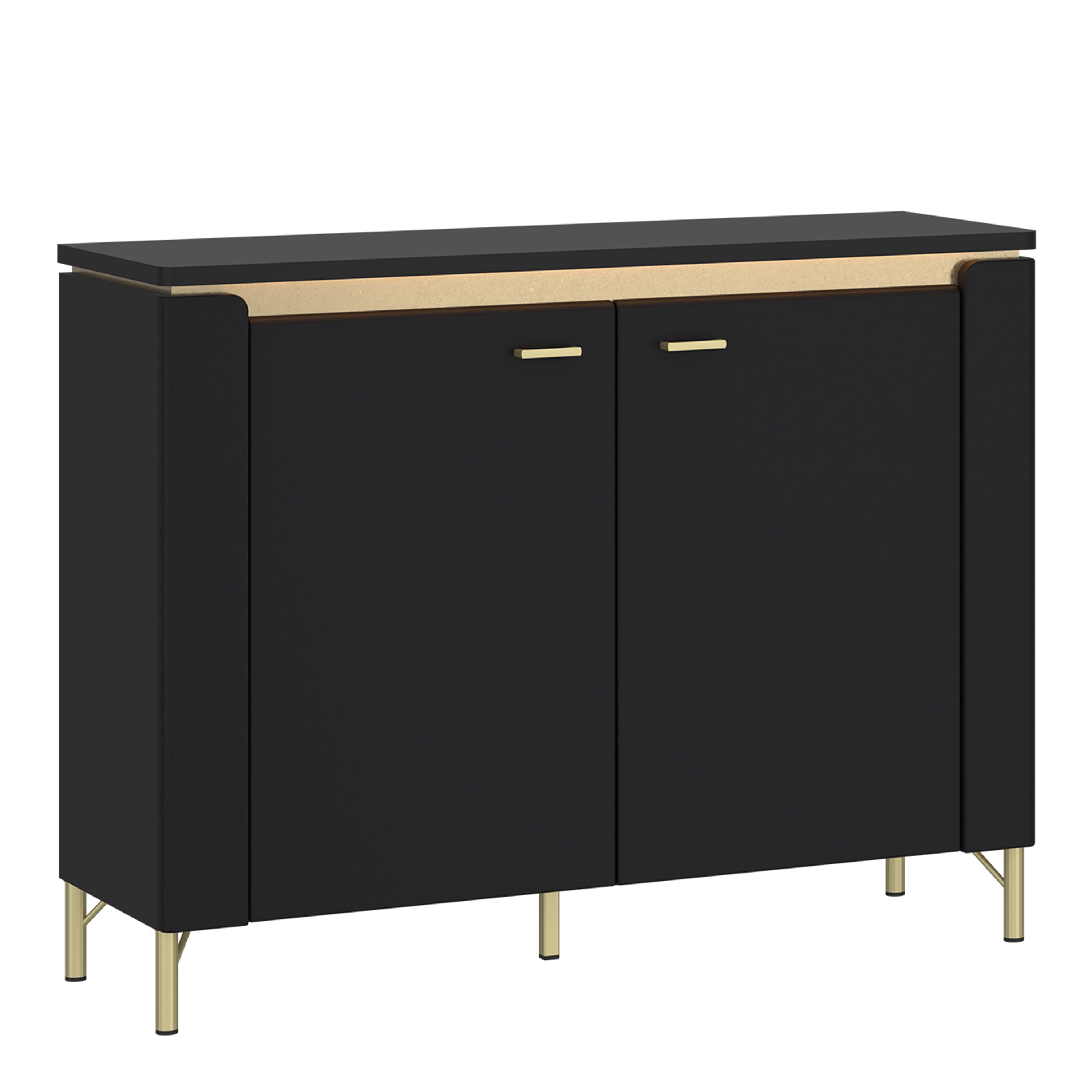 Sideboard - GENOA 2 Door Sideboard Black Matt and Gold 110.4cm