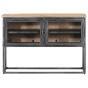 This wooden sideboard optimises your living space and provides ample storage space for your personal belongings! The vitrine cabinet is made of solid acacia wood, a hardwood with dense grains. This beautifully-designed cabinet is stable, durable and eye-catching. The exquisite craftsmanship and beautiful wood grains make every piece slightly different from the next. The side cabinet features 2 shelves inside 2 doors, making it ideal for storing books, multimedia appliances and other items. You can see the objects clearly through the glass doors. The sturdy tabletop is also perfect for displaying decorative objects, photo frames, and potted plants. Additionally, the steel legs add to its sturdiness. Important note: The colours vary from piece to piece, making each piece unique. The delivery is random.