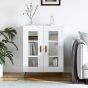 This classic sideboard, featuring a timeless look and glass design, is meant to be an excellent addition to your home. Durable material: The engineered wood is of exceptional quality with smooth surface and also features strength, stability and resistance to moisture. Made of engineered wood, the cabinet is easy to clean with a damp cloth.Ample storage space: The sideboard cabinet offers ample storage space for keeping your various daily essentials well organised and within easy reach.Glass design: The glass design highlights the cupboard's elegance and allows you to display your favourite things.Displaying function: The top of the storage cabinet is great for displaying your decorative items, photo albums or small plants.Metal feet: The metal feet add a calm style to your interior while ensuring stability. Warning:To prevent it being overturned, this product must be used with the provided wall attachment device.