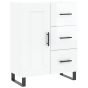 This trendy sideboard, featuring a timeless look, is meant to be an excellent addition to your home. Durable material: The engineered wood is of exceptional quality with smooth surface and also features strength, stability and resistance to moisture.Ample storage space: The sideboard cabinet has 2 compartments and 3 drawers, providing ample storage space for keeping your various daily essentials well organised and within easy reach.Displaying function: The top of the cupboard is perfect for placing potted plants, framed photos and other decorative items.Practical door and handles: Keep your essentials free from dust by hiding them behind the door. In addition, the handles on the door and drawers make it easy to open the storage cabinet.Metal legs: The metal legs add a modern and calm style to your interior while ensuring stability. Warning:To prevent it being overturned, this product must be used with the provided wall attachment device.