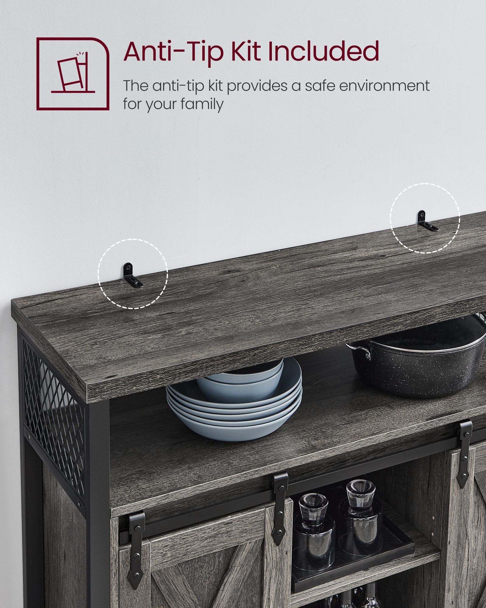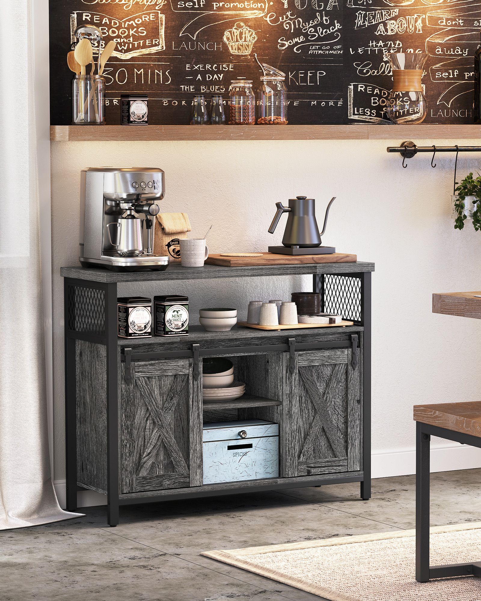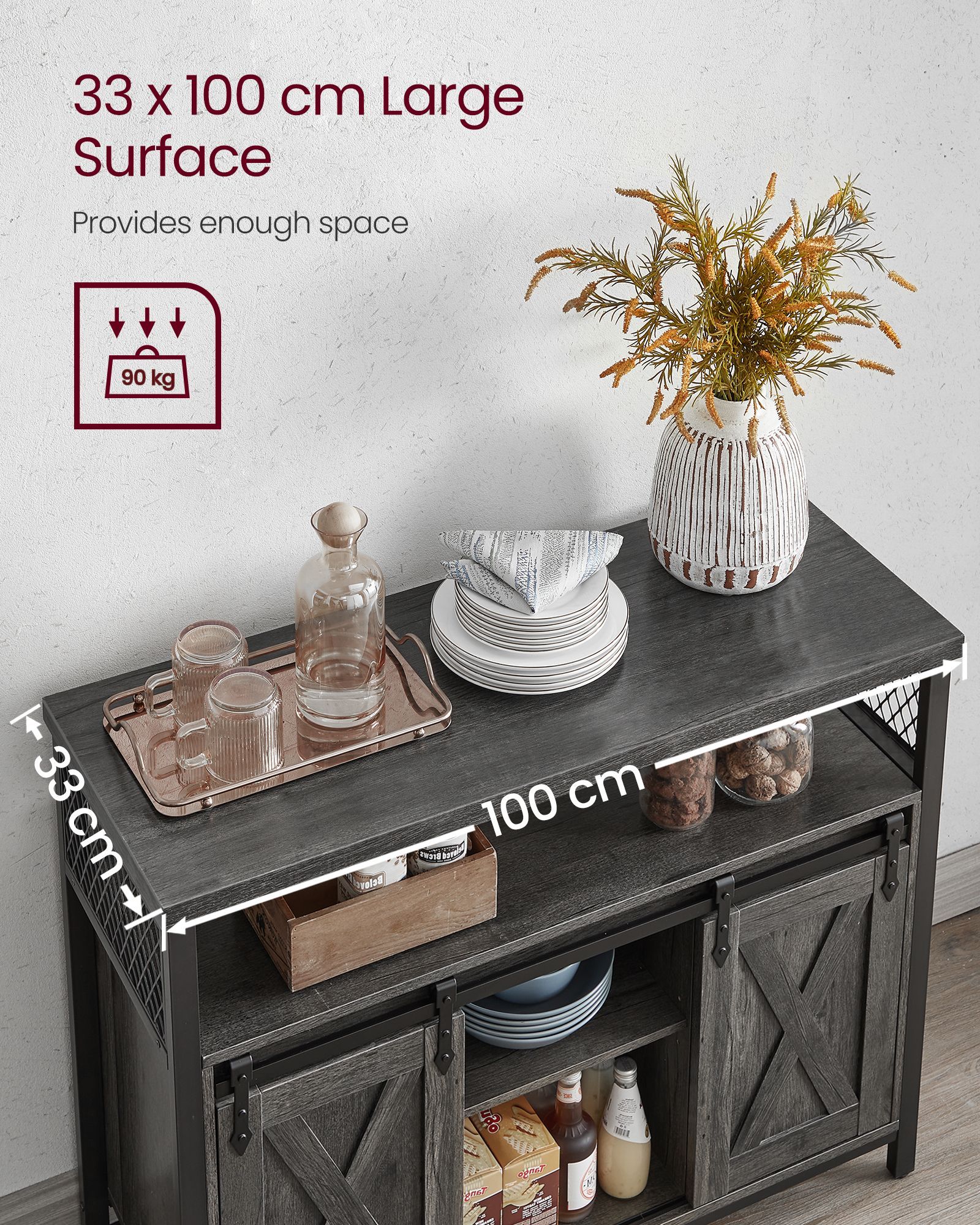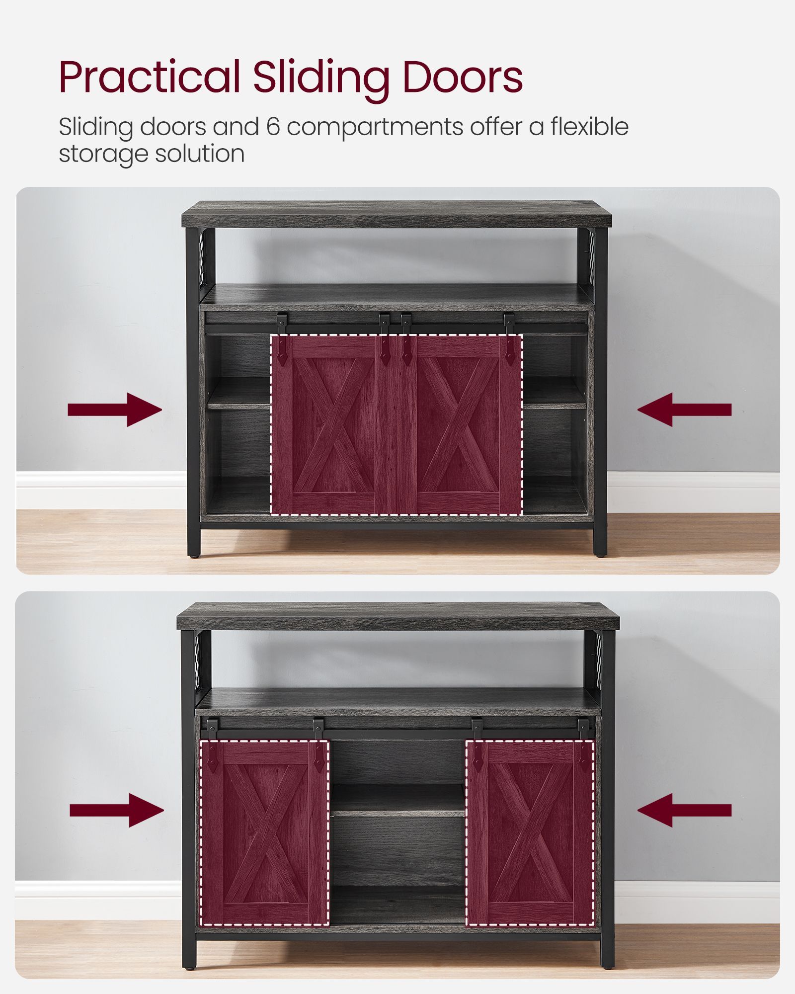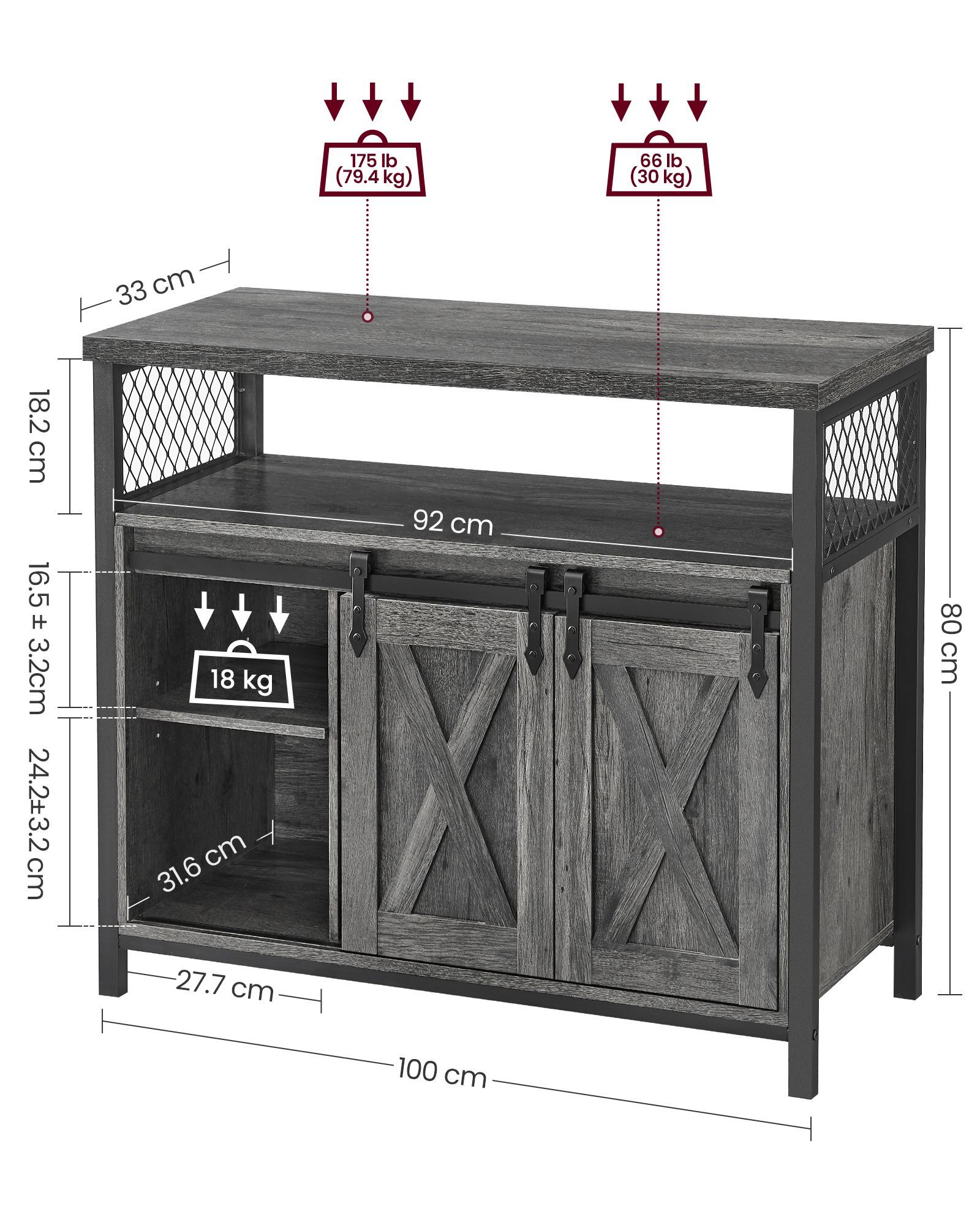 Sideboard - VIVZA Sliding Barn Doors Adjustable Shelves - Stone Grey and Black