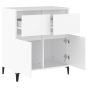 This stylish sideboard is a perfect choice for your room with its trendy and practical design. Durable material: The engineered wood is of exceptional quality with a smooth surface and also features strength, stability, and resistance to moisture.Metal feet: The metal feet offer sturdiness and stability for the side board.Ample storage space: This cabinet has 2 drawers and 2 compartments with doors to keep your essentials well organised and within reach.Wide applications: You can use this side cabinet as a bathroom cabinet or kitchen cupboard, or just as an elegant storage cabinet in bedrooms, powder rooms, entryways, corridors and offices, dining rooms, and other living areas. Good to know:To make assembly as easy as possible, each product is delivered with a manual. Warning:To prevent it being overturned, this product must be used with the provided wall attachment device.
