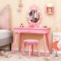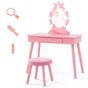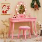 SILUAL Kids Vanity Set with Lighted Mirror and Adjustable Brightness for Kids Aged 3-7 Years Old-Pink