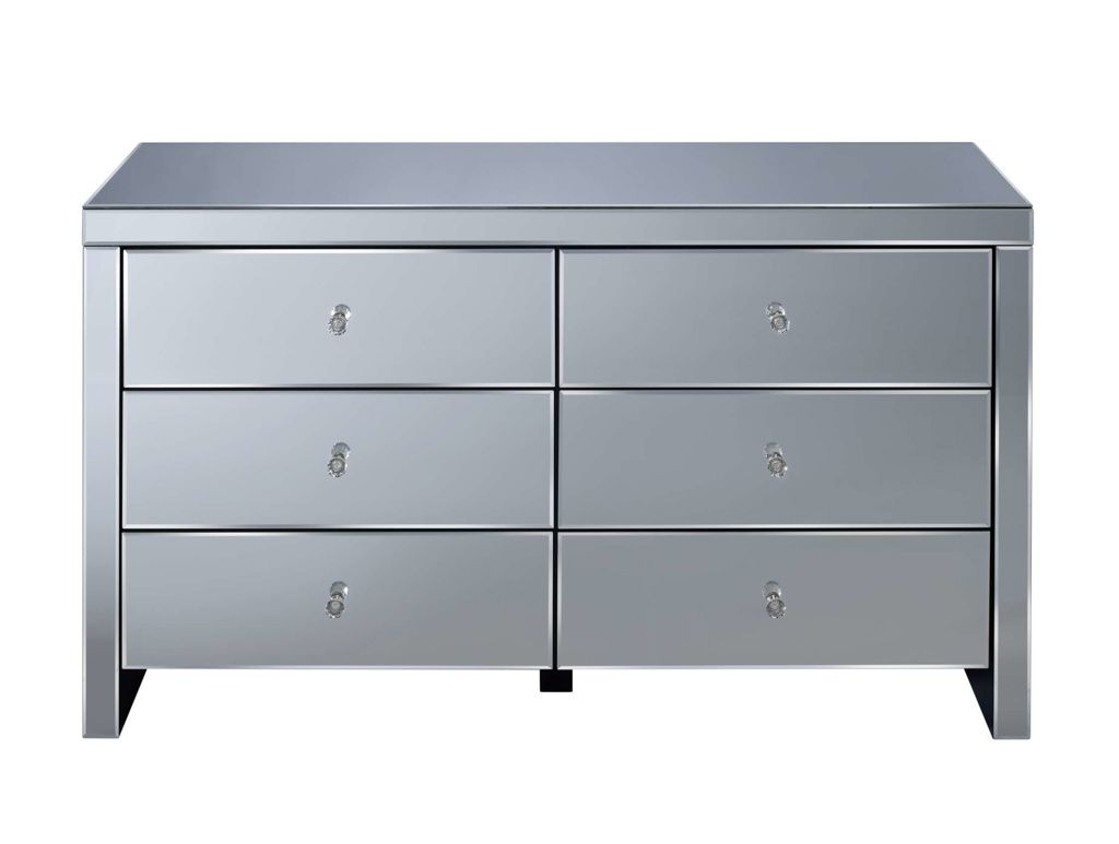 SUTTON Silver Chest of Drawers - Large-sized, 6 Drawers, Double, Mirrored, Ready Assembled