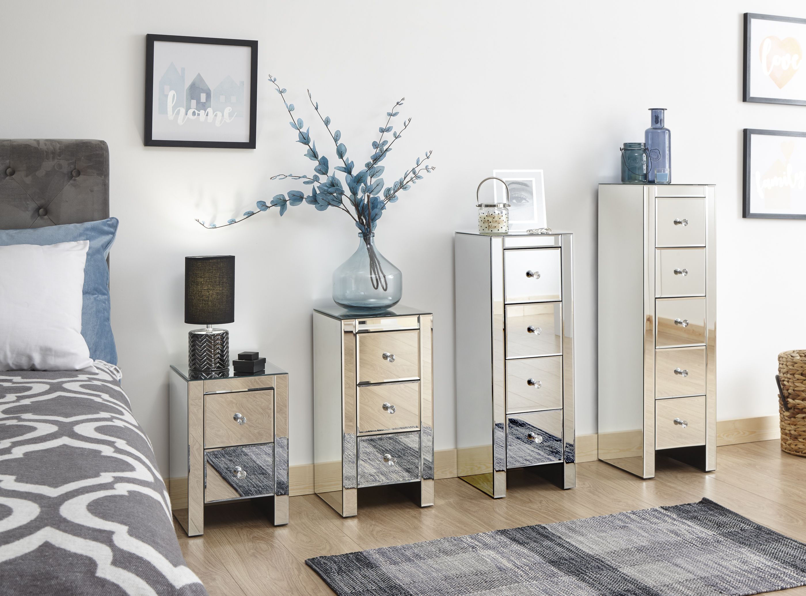 TROY Silver Chest of Drawers - Tallboy, Small-sized, 3 Drawers, Mirrored