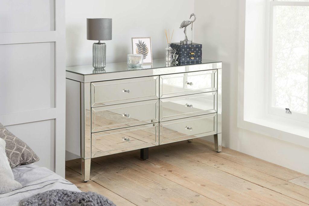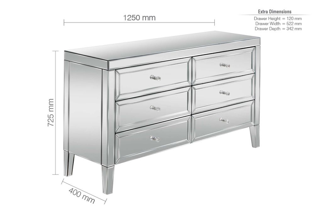 VAUGHAN Silver Chest of Drawers - Large-sized, 6 Drawers, Double, Mirrored