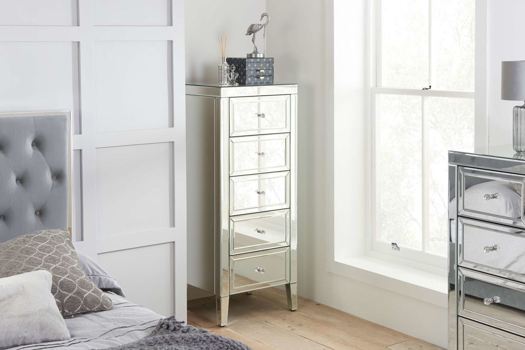 VAUGHAN Silver Chest of Drawers - Tallboy, Medium-sized, 5 Drawers, Mirrored