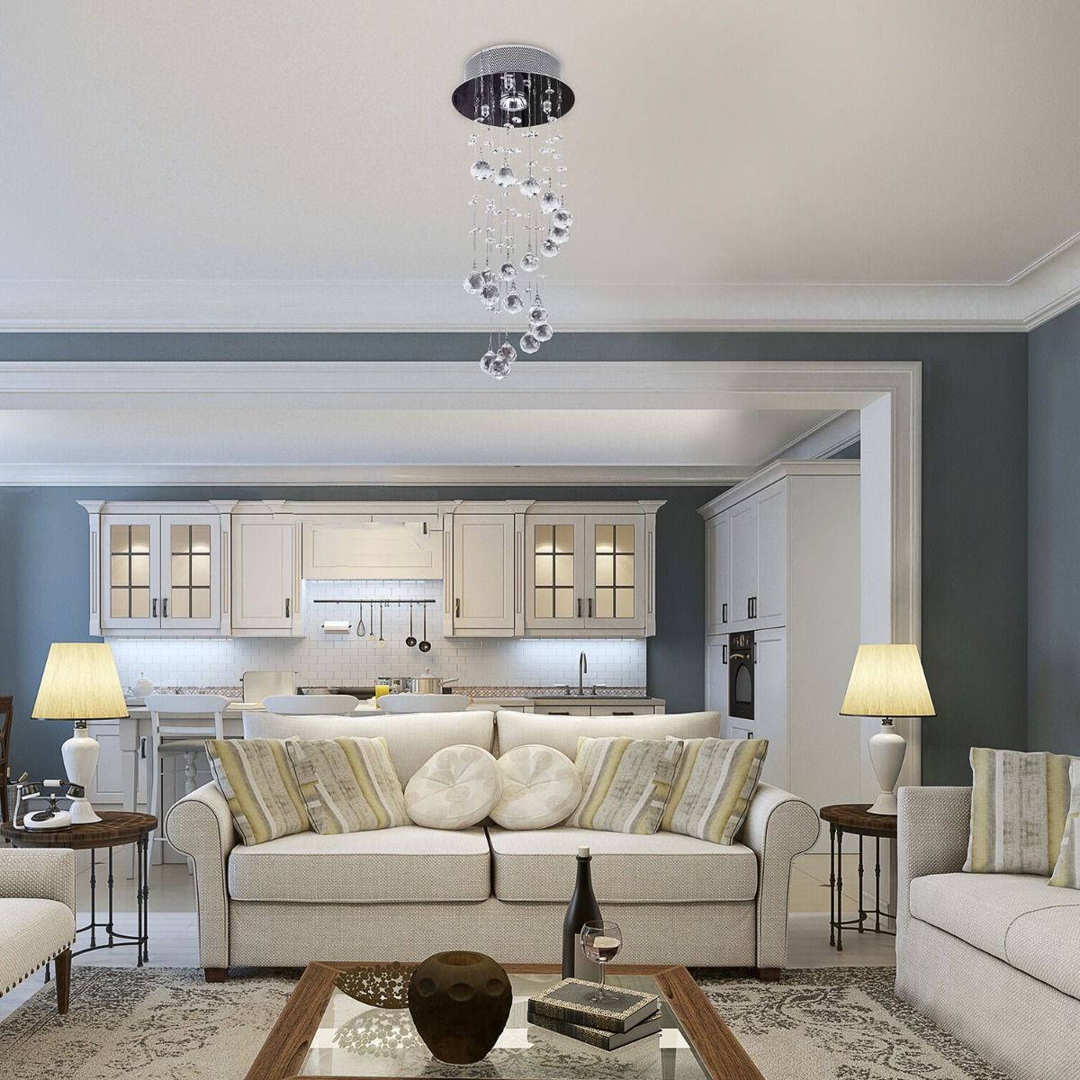 The deluxe spiral rain drop lighting ceiling lamp is ideal for any décor and is designed to enhance the overall lighting illusion. Ideal for Living Room, Hallway, Stairway, Home office and the crystal design gives it even more grand feel.