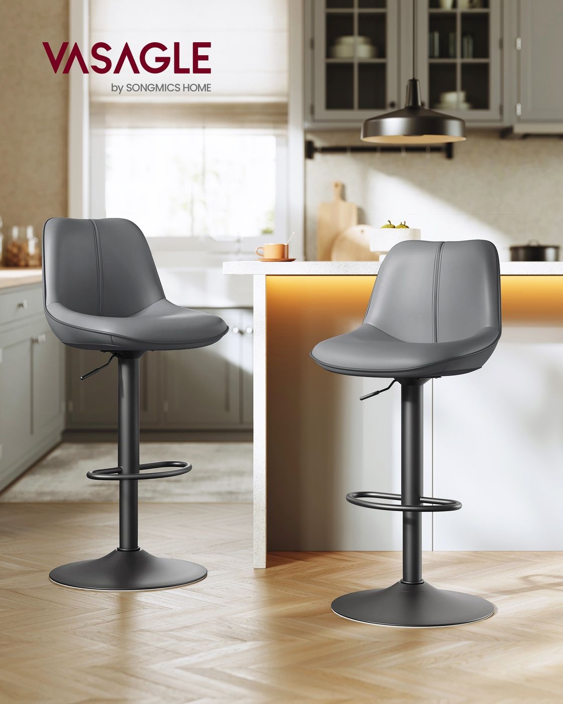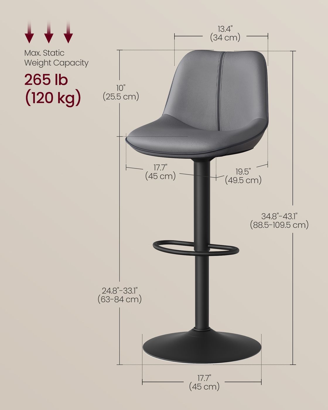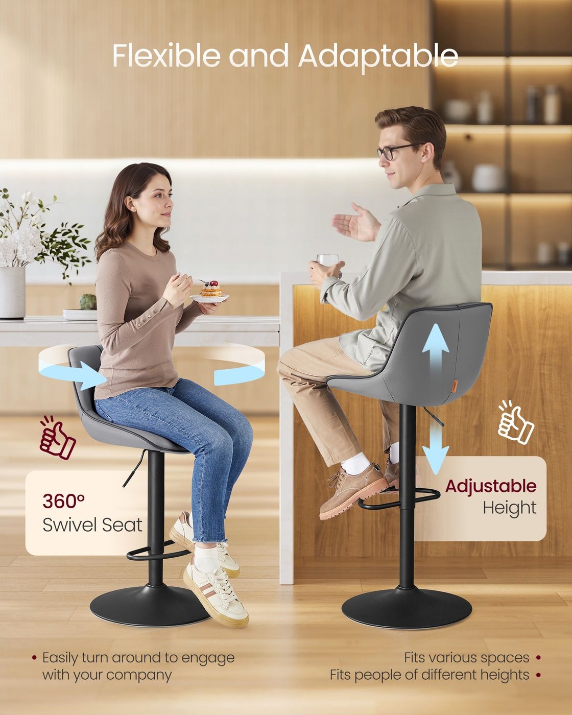 SILVERMERE Height Adjustable Swivel Bar Stool Set of 2 - Grey