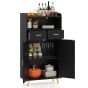 Its strong metal legs ensure durability and stability. Moreover, this sideboard buffet cabinet features a wide countertop, an open compartment, 2 drawers and a 2-door cabinet, optimized for storage as a kitchen storage cupboard or pantry cabinet. The interior features a 3-level adjustable shelf, providing flexible storage solutions for items big and small. For added safety and peace of mind, this freestanding storage cabinet is equipped with anti-toppling devices and drawer stoppers. Maximize Your Space: Featuring a spacious countertop, an open compartment, 2 smoothly sliding drawers and a 2-door cabinet, this kitchen storage cabinet is perfect for keeping your essentials organized and within easy reach. Customizable Convenience: This pantry cabinet boasts a 3-level adjustable shelf within the cabinet, allowing you to optimize your organizing strategy based on the size and shape of the items you need to store.