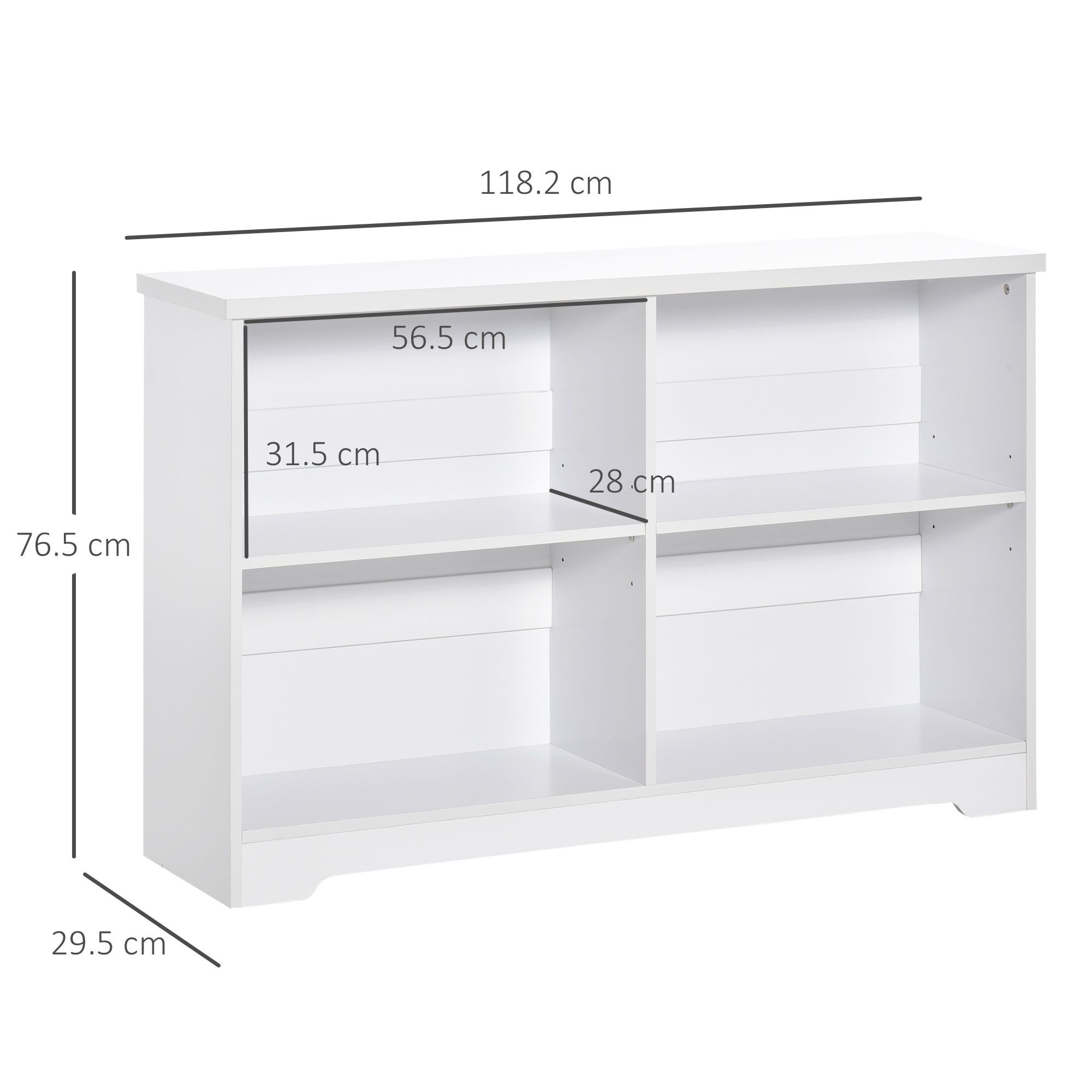 Simple Modern 4-Compartment Low Bookcase 2-Tier w/ Moving Shelves Cube Display Storage Unit Home Office Living Room Furniture White