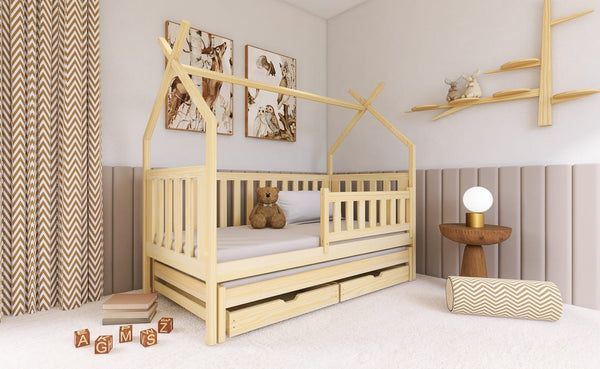 The Julia Wooden Single Bed with Trundle is a versatile and stylish addition to any bedroom. Crafted from high-quality pine, this bed features a width of 198 cm, providing ample space for a comfortable night's sleep. The design allows for a choice of four elegant colors—White, Graphite, Pine, and Grey—each enhancing the natural grain of the wood while offering a subtle finish. The included trundle bed is perfect for accommodating guests or maximizing space in smaller rooms. This bed combines functionality with aesthetic appeal, making it an ideal choice for both children and adults.