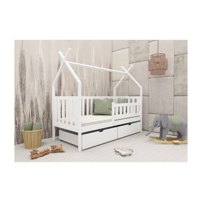 Single Bed - YUNA Wooden 3ft Bed with Storage and Bonnell Mattresses White Matt