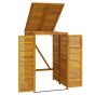 This wooden garbage bin shed keeps the waste bin in your garden out of your sight and creates a beautiful and clean environment. Solid acacia wood: Solid acacia wood is a beautiful natural material. Acacia wood is a tropical hardwood, which is dense, sturdy, and durable.Considerate design: The doors and the lid allow you to put into and take out the waste bin easily. In addition, the garbage bin box features locks at the front to keep the doors securely closed.Practical design: The single bin shed features a metal chain connecting the lid of the waste bin to the lid of the garbage bin box, so when the wooden box is opened, the garbage box opens automatically. Good to know:To make assembly as easy as possible, each product is delivered with a manual.