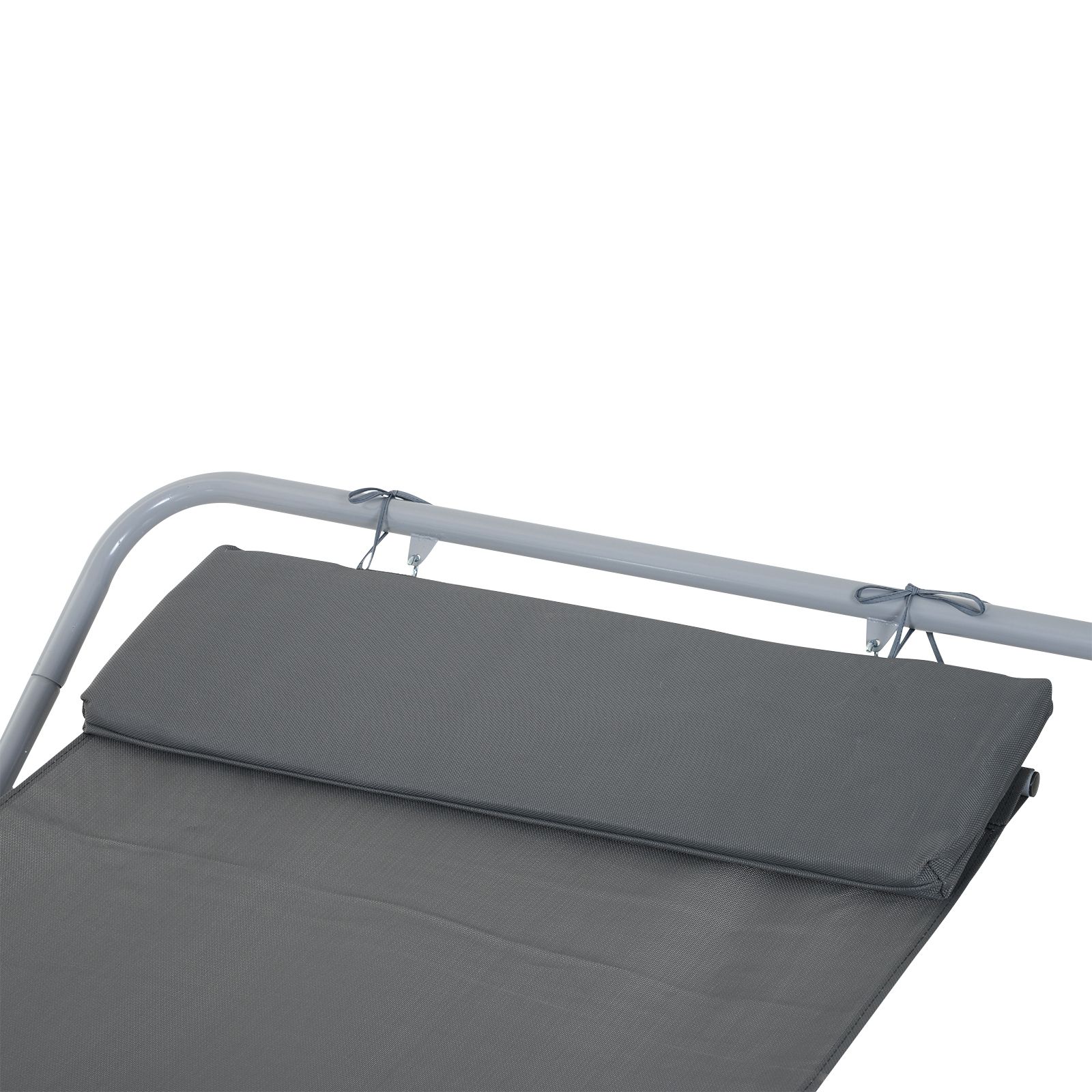 - Modern design, made of weather-proof high quality texteline fabric •Steel frame is constructed to withstand inclement elements •Comes with pillow, let you rest your head
