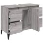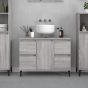 This sink cabinet is meant to be a great addition to your bathroom, giving it a tidy and striking appearance! Durable material: The engineered wood is of exceptional quality with smooth surface and also features strength, stability, and resistance to moisture.Ample storage space: The bathroom sink cabinet has 4 drawers and 1 compartment with a door, offering various storage options and extra space to store items in your bathroom. The top of the bathroom cabinet is ideal for placing the sink.Metal feet: The metal feet add a modern and calm style to your interior while ensuring stability.Easy-to-clean surface: The bathroom furniture is easy to clean with a damp cloth. Warning:To prevent it being overturned, this product must be used with the provided wall attachment device. Good to know:To make assembly as easy as possible, each product is delivered with a manual.The sink is not included.