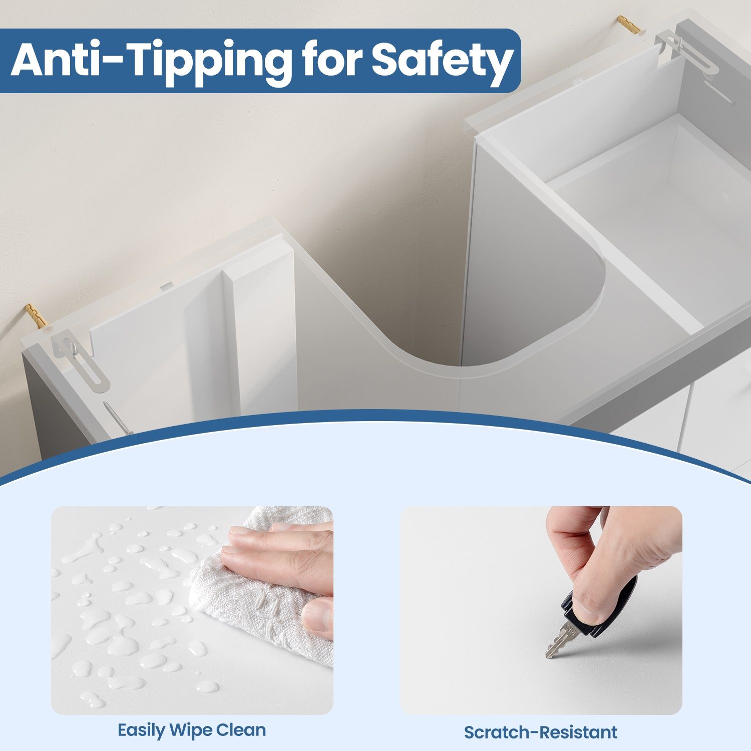 Sink Cabinet - MARDA Bathroom Under Sink Storage with 3 Drawers for Pedestal Washbasin - White