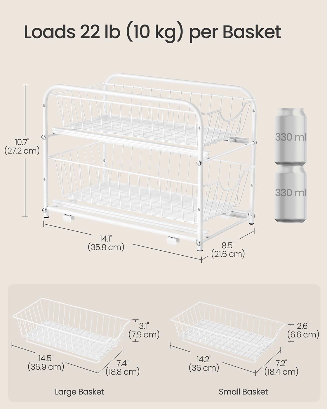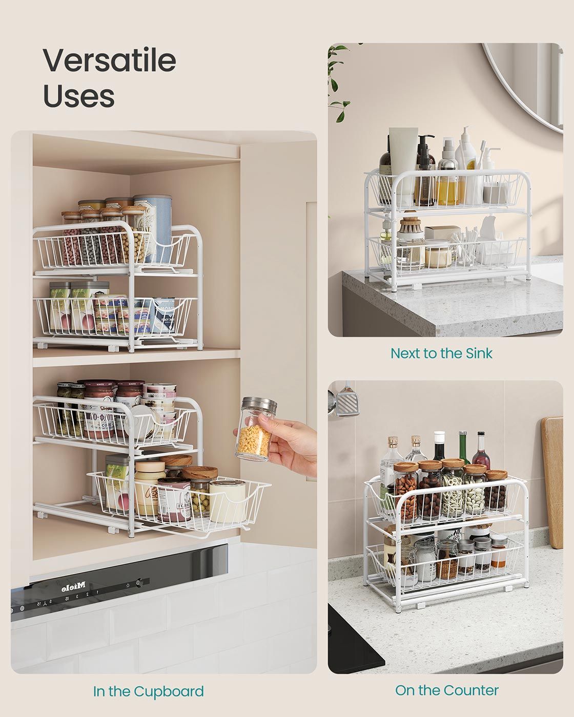 Sink Organizer - LUSLIA 2 Tier Under Sink Cupboard Organizer Matte White